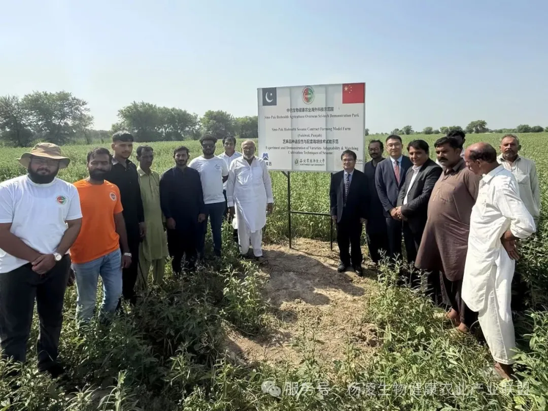 2025 年8 月 11 日,一支由西北农林科技大学丝绸之路生物健康农业产业联盟理事长张立新教授、副秘书长孙道阳副教授带队的代表团,抵达巴基斯坦旁遮普省拉合尔西南的萨希瓦尔地区,对中巴生物健康农业海外科技示范园旗下的生物健康芝麻订单示范农场展开访问。
