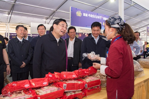 书记李婧陪同下参观了特色农产品专题展