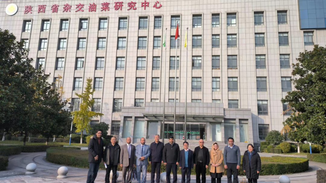11月13日,伊朗驻华使馆科学参赞伊斯玛依莱·麦赫亚尔(Esmaeil Mehryar)、埃及国家研究中心首席科学家纳比尔·萨贝特·穆斯塔法(Nabil Sabet A. Mustafa)、埃及农业研究中心Yasser Thabet A. Moustafa教授,西北农林科技大学教授、丝绸之路(杨凌)生物健康农业产业联盟理事长张立新一行9人来省杂交油菜研究中心考察交流,省油菜中心主任穆建新陪同。