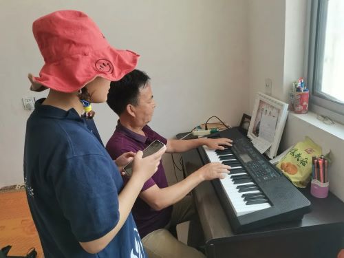 图为队员受”音乐家“爷爷邀请到他家听表演