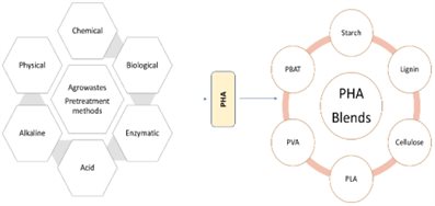 图一 利用农业废弃物合成PHA材料及其复混改性示意图