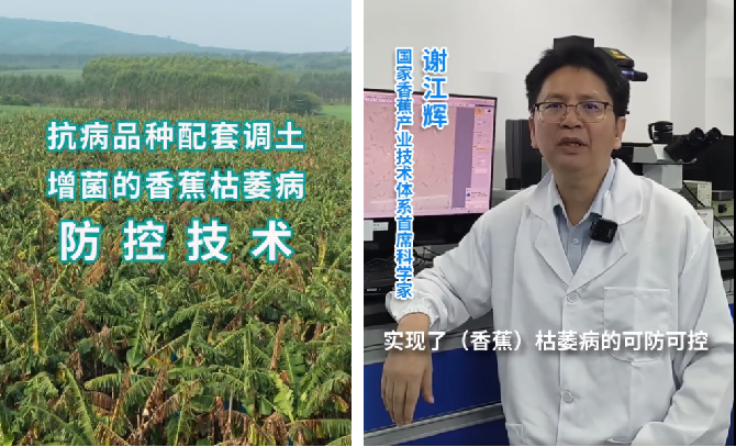 2024年,香蕉品种“宝岛蕉”再次入选农业农村部主导品种,“抗香蕉枯萎病品种关键栽培技术”“抗病品种配套调土增菌的香蕉枯萎病防控技术”等2个技术入选农业农村部主推技术。近日,相关科普宣传视频《抗病品种配套调土增菌的香蕉枯萎病防控技术》在多个新媒体平台发布,以科普宣传视频传播香蕉体系最新科研成果,服务广大受众群体。视频由中国热带农业科学院热带生物技术研究所、国家香蕉(芒果)产业技术体系研发中心(以下简称“香蕉体系”)联合拍摄发布。